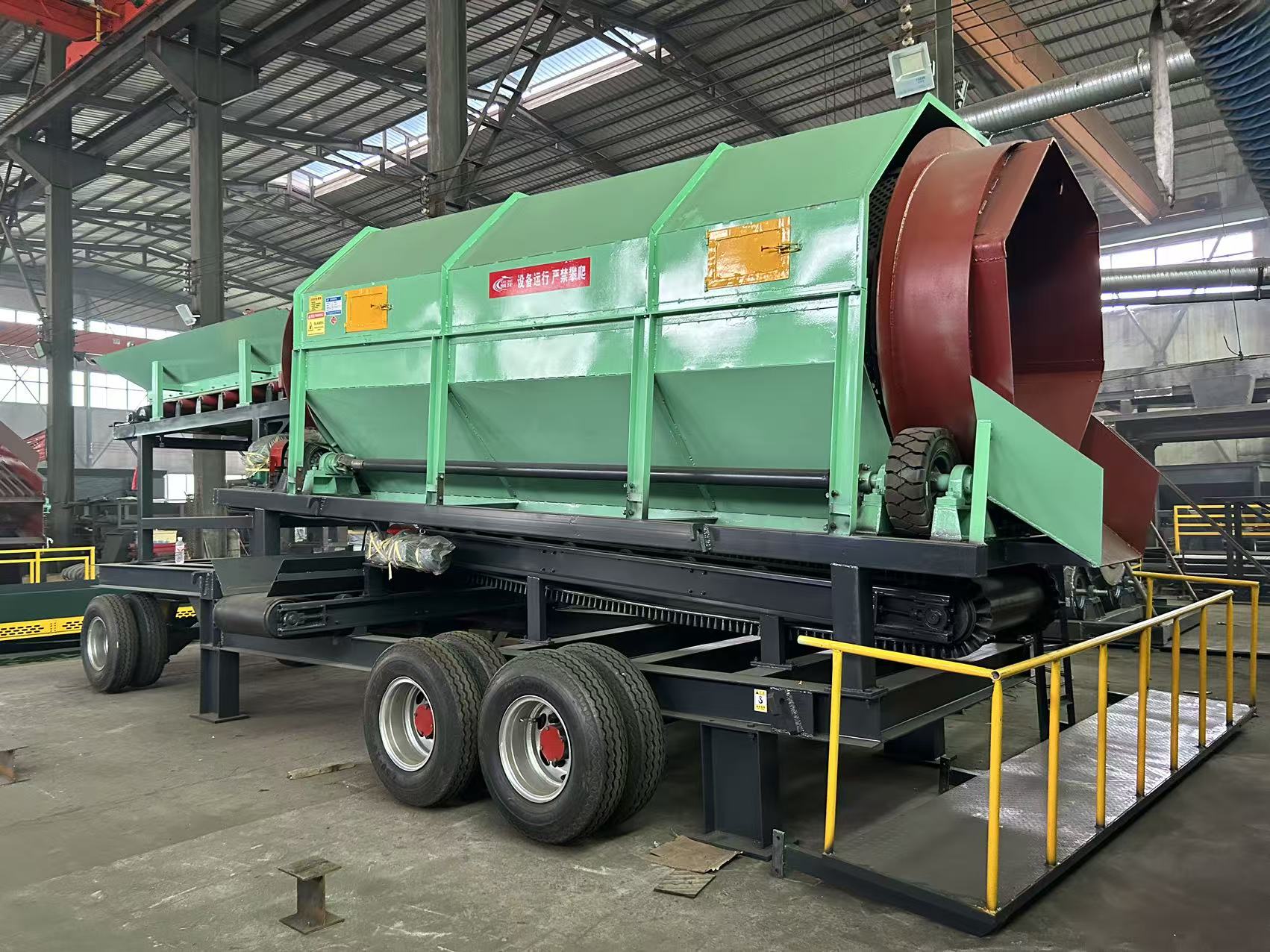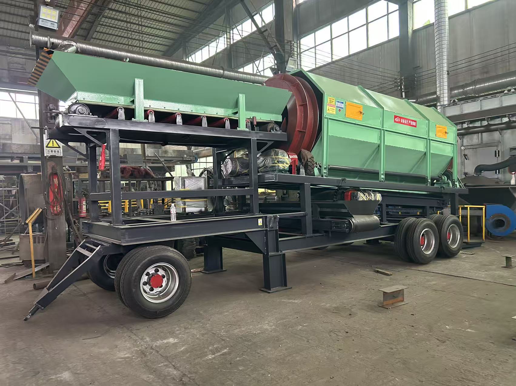 傳統(tǒng)固定篩分設(shè)備安裝復(fù)雜、靈活性差,而普通有軸滾筒篩在處理濕黏物料時(shí)易出現(xiàn)軸卡料、篩網(wǎng)堵塞等問(wèn)題。移動(dòng)式無(wú)軸滾筒篩結(jié)合了“可移動(dòng)底盤”與“去軸結(jié)構(gòu)”,實(shí)現(xiàn)了快速轉(zhuǎn)場(chǎng)、即停即用、快速防堵三大優(yōu)勢(shì),特別適用于施工現(xiàn)場(chǎng)、礦山野戰(zhàn)線、建筑垃圾臨時(shí)處理站等場(chǎng)景。